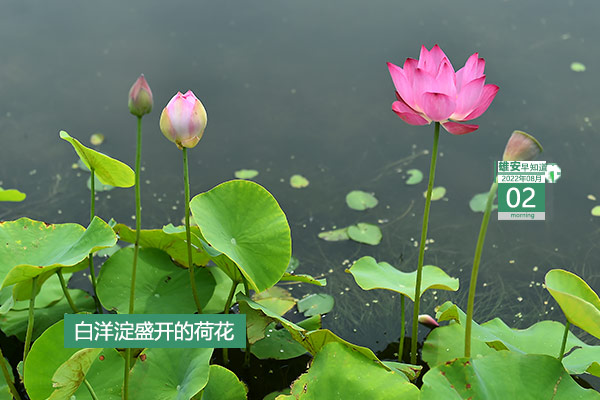 今天是2022年8月2日,星期二,天氣多云?,27℃~34℃。在封面和大家見面的是白洋淀盛開的荷花。