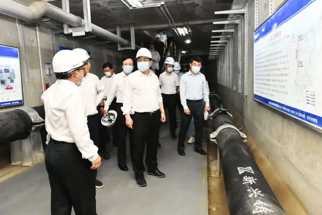 張國華一行先后來到啟動區科創綜合服務中心(一期)、啟動區西部高中項目建設現場,實地調研檢查項目建設進度,隨后到啟動區NA8管廊以及EA4、NA10道路南延等項目建設現場,聽取基礎設施建設進展情況匯報,步入地下管廊綜合艙、電力艙內部,察看管廊建設及管線入廊情況,對項目順利推進表示肯定。
