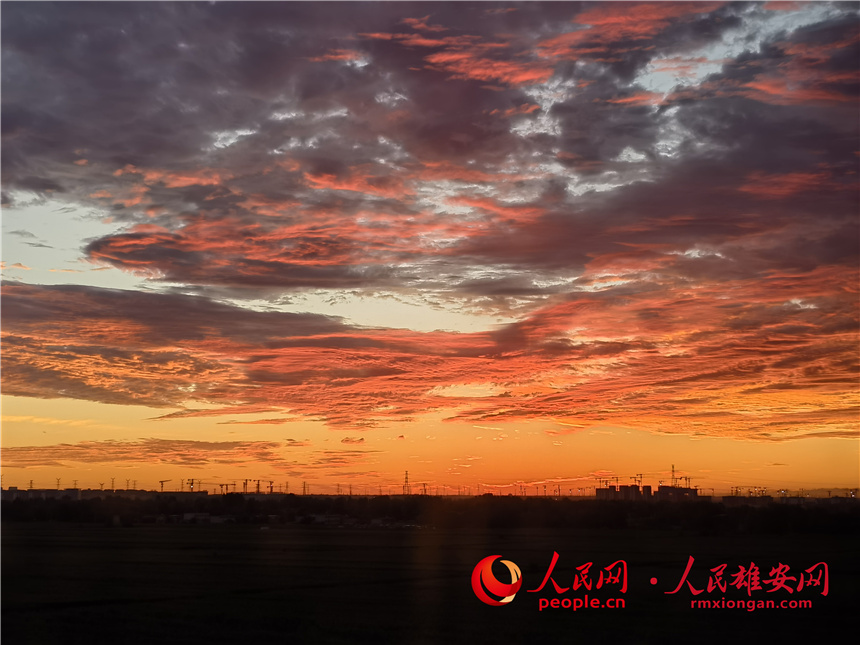 8月23日清晨,雄安新區上空云霞滿天。王江洲攝