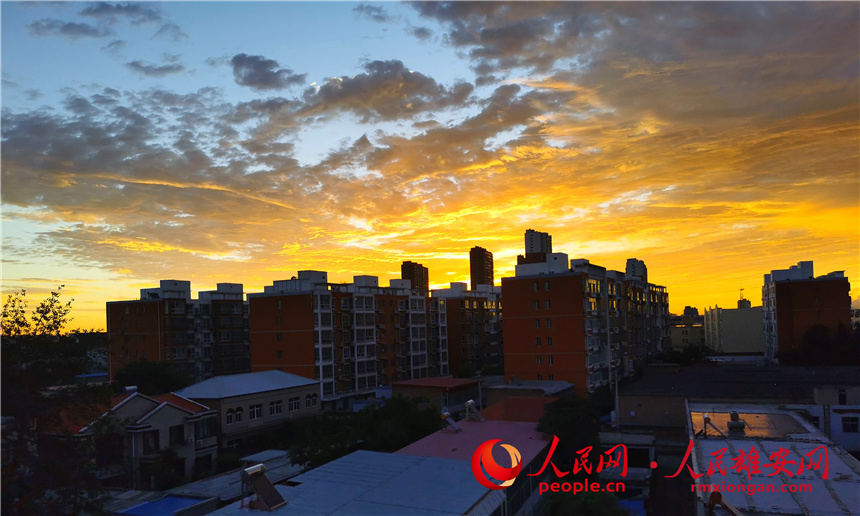 人民網雄安8月23日電 (李雪晴)離離暑云散,裊裊涼風起。今日進入處暑節氣,清晨,雄安新區上空云霞滿天,被朝霞映紅的天際宛如油畫,五彩斑斕,如夢如幻。天高云淡、色彩繽紛的初秋美景,開始鋪陳開來。