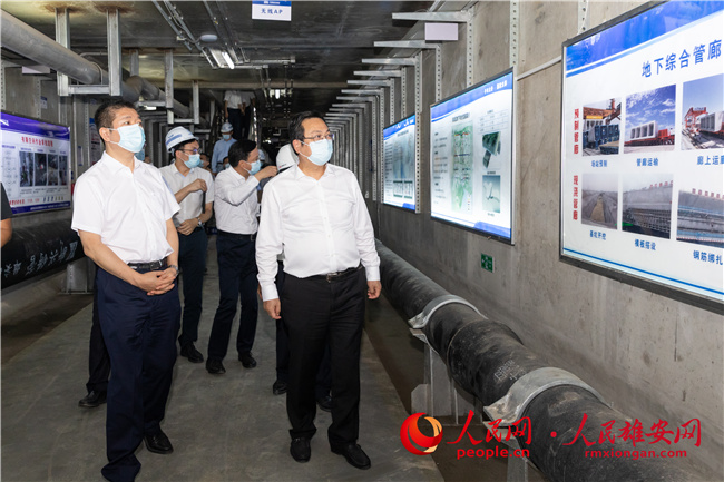 在雄安新區調研考察期間,張國華陪同姚林、郭斌一行先后前往啟動區綜合服務中心和中央綠谷及東部溪谷、中國電信智慧城市產業園、啟動區NA8綜合管廊等項目現場,實地了解啟動區重點項目、基礎設施和配套設施建設情況。之后,共同前往中國礦產資源集團有限公司總部擬選址地塊進行實地考察,詳細了解擬選址地塊的地理位置、周邊規劃、市政配套、區位優勢等情況,并最終結合自身需求確定了企業總部選址位置。