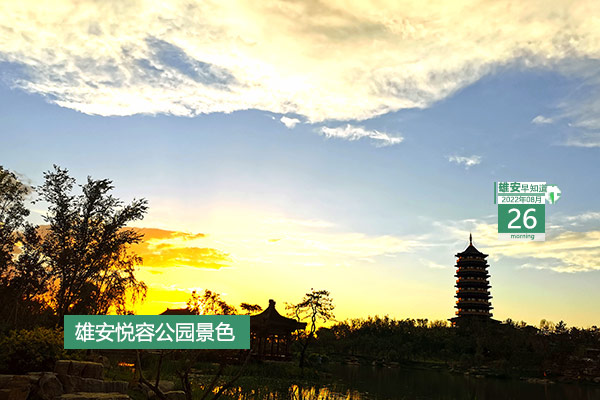 今天是2022年8月26日,星期五,天氣多云,14℃~29℃。在封面和大家見面的是雄安悅容公園景色。