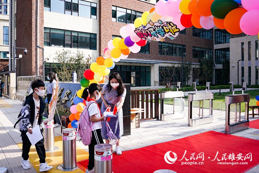 人民網雄安9月1日電 (李雪晴、李兆民、楊華龍)創意滿滿的歡迎板報、精美的氣球拱門、儀式感滿滿的“朱砂啟智”……9月1日一大早,記者在雄安新區容東片區看到,各學校精心準備了入學儀式,迎接孩子們。
