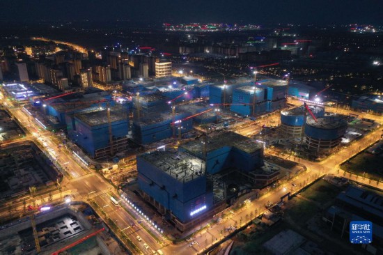 雄安新區容東片區雄安·電建智匯城建設項目夜景(2022年8月17日攝,無人機照片)。新華社記者 朱旭東 攝