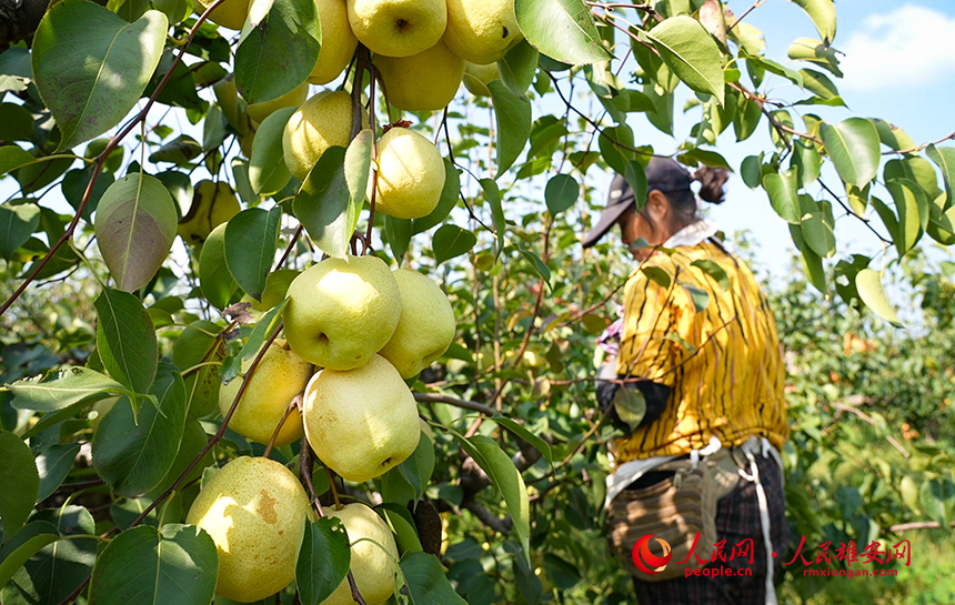 雄縣的馬蹄灣村,幾千畝梨園里,沉甸甸的果實壓彎了枝頭,現場的村民正在這里搶摘秋梨。雄縣融媒體中心供圖
