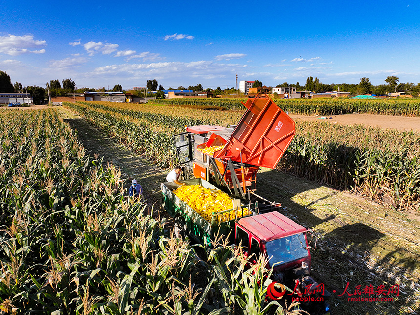 玉米喜獲豐收村民樂開懷。人民網?宋燁文攝