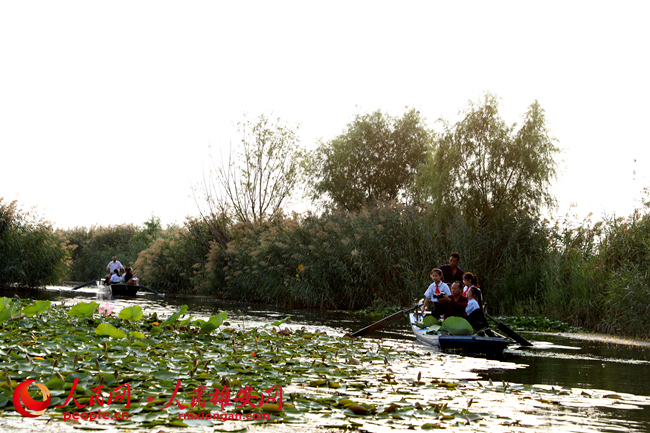 安新縣第二小學的師生們泛舟白洋淀。人民網 劉師豪攝
