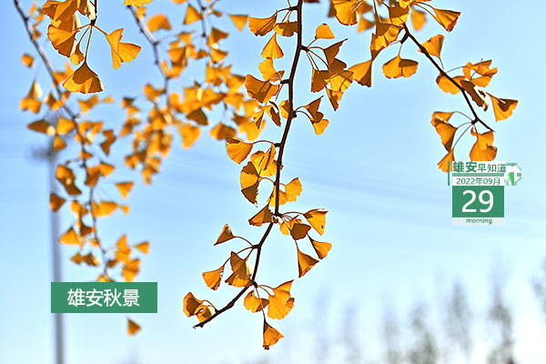 今天是2022年9月29日,星期四,天氣晴,18℃~30℃。在封面和大家見面的是雄安秋景。