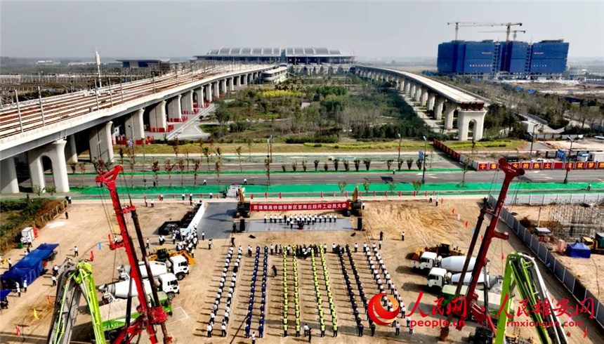 人民網雄安9月29日電 (李雪晴)據中國國家鐵路集團有限公司(下稱“國鐵集團”)消息,京雄商高鐵雄安新區至商丘段今天正式開工建設。開工動員大會在河北雄安、山東聊城、河南濮陽等京雄商高鐵雄安新區至商丘段沿線三地以視頻連線方式舉行。