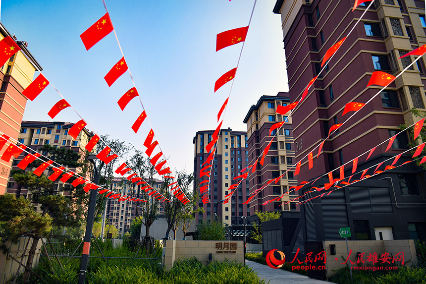 雄安新區容東片區大街小巷國旗飄揚。人民網 宋燁文攝
