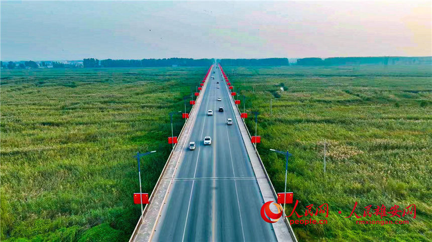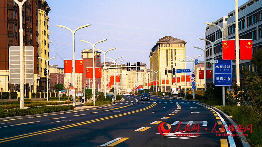 雄安新區容西片區大街小巷國旗飄揚。人民網 楊華龍攝
