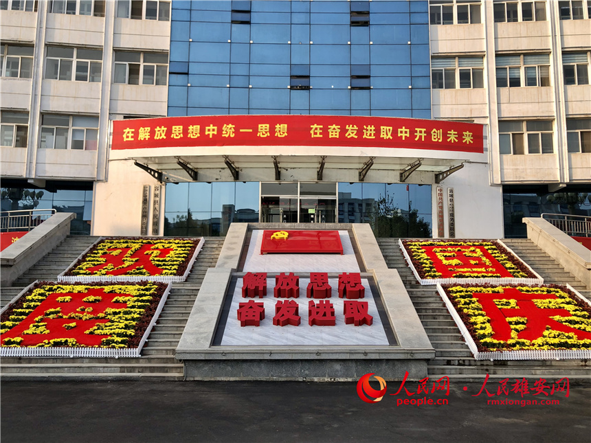 雄安雄縣政府廣場內花團錦簇,洋溢著濃厚的節日氛圍。石向宇攝