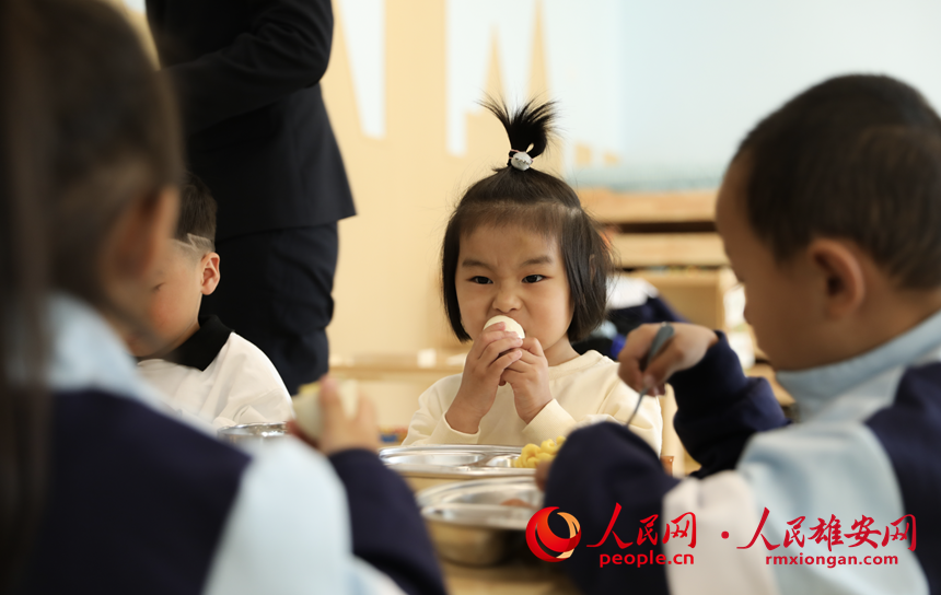 興學幼兒園的小朋友正在吃早餐。人民網 李兆民攝