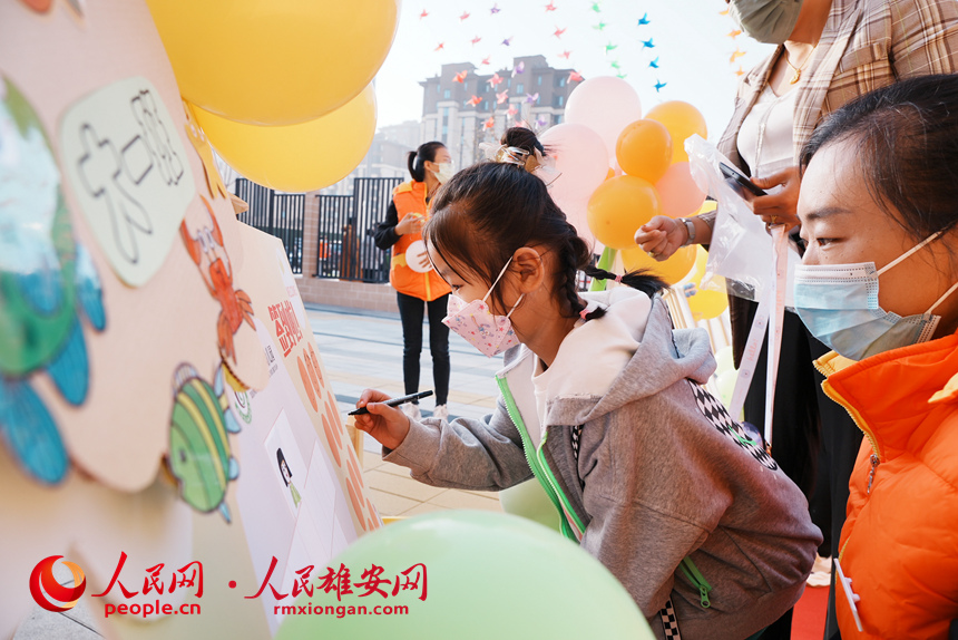 和平幼兒園入園儀式上,小朋友正在簽名。王青峰攝