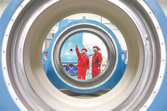 位于張家口經濟技術開發區的金風科技河北有限公司,員工在風機制造工廠忙碌。張家口市加速推進風能裝備、光伏組件、氫能裝備制造等可再生能源產業項目。河北日報資料片