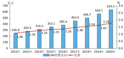 2020年,全社會研究與試驗發展(R&D)經費支出634.4億元,比2012年增長1.6倍,年均增長12.6%;R&D經費投入占生產總值比重1.76%,比2012年提高0.7個百分點。創新成果加速涌現。