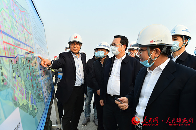 秋日風光好,奮斗正當時。雄安新區啟動區各項目施工現場塔吊林立,工程車輛來往穿梭,一派繁忙景象。張國華一行先后來到西北居住片區二期中交啟園、中國星網、綜合服務東北片區南部小學、南河樞紐、新安北堤老堤、一二三組團道路管廊、雄忻高鐵萍河先開段等項目建設現場,聽取項目建設進展情況匯報,認真檢查疫情防控措施落實情況,現場協調解決相關問題。