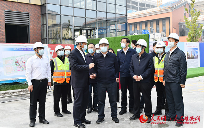 張國華一行先后來到容東片區金湖未來城展示中心、華望城璟云庭四區、金湖公園體育分園、雄安電建智匯城、雄安國際酒店等項目建設現場,詳細了解項目建設和疫情防控工作情況,現場協調解決相關問題。調研結束后,張國華主持召開新區黨工委管委會專題會議,就相關工作提出明確要求。