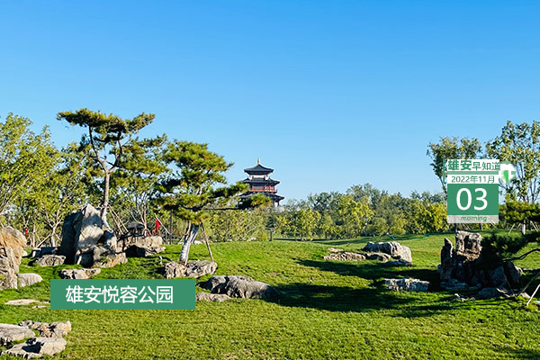 今天是2022年11月3日,星期四,多云轉晴,0℃~12℃。在封面和大家見面的是雄安悅容公園。