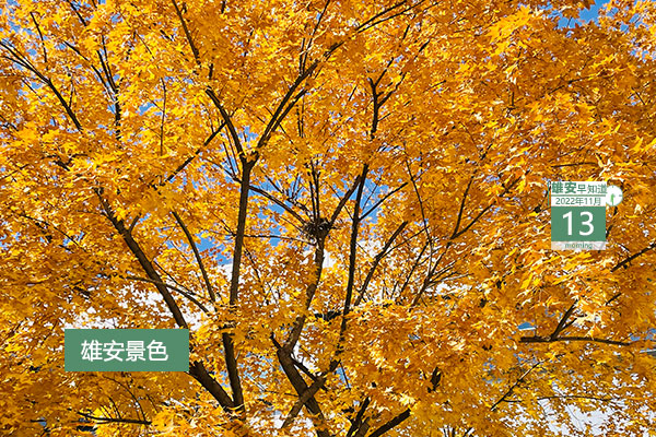 今天是2022年11月13日,星期日,天氣多云,-2℃~9℃。在封面和大家見面的是雄安景色。