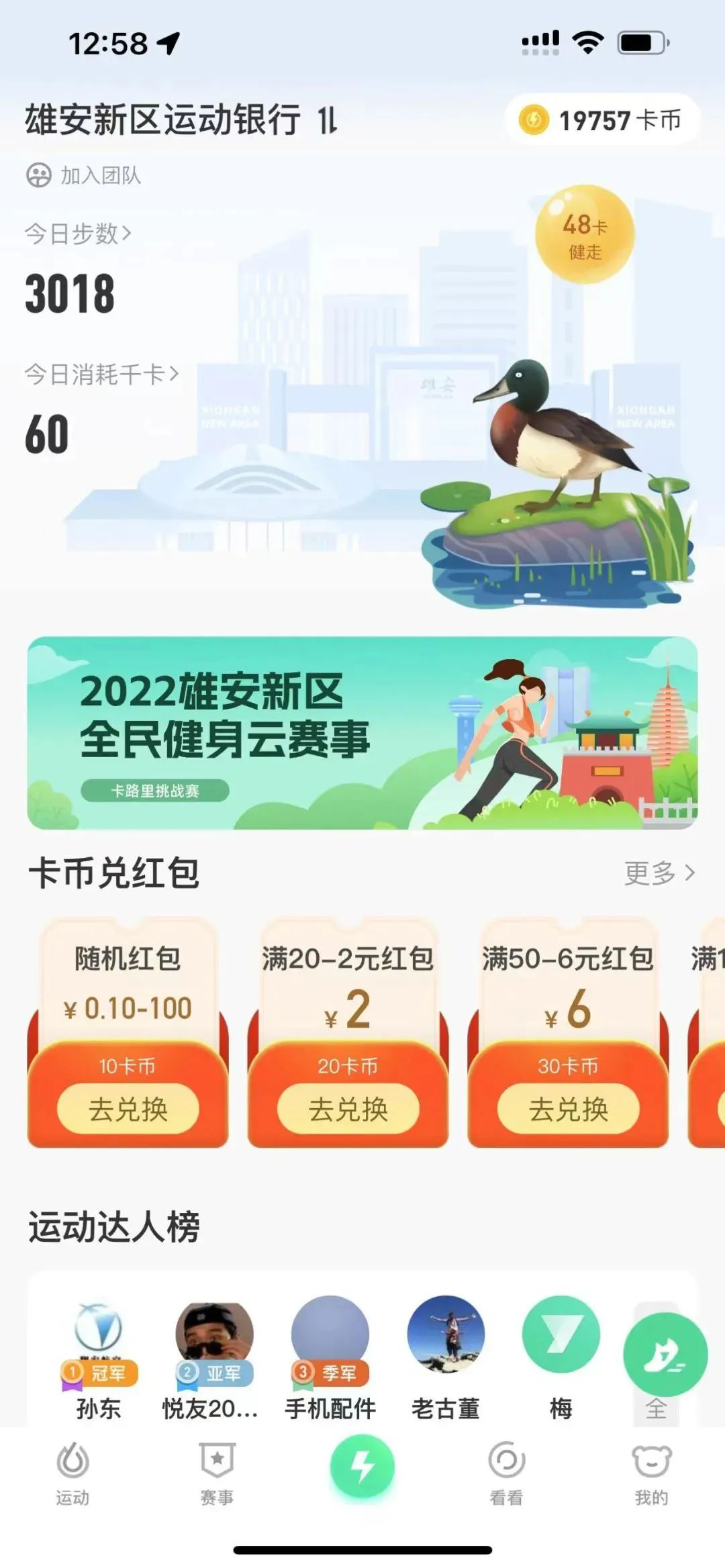 本次全民健身云賽事自上線起將持續一個月,雄安新區用戶僅需下載悅動圈APP,加入雄安新區運動銀行,即可參與活動。