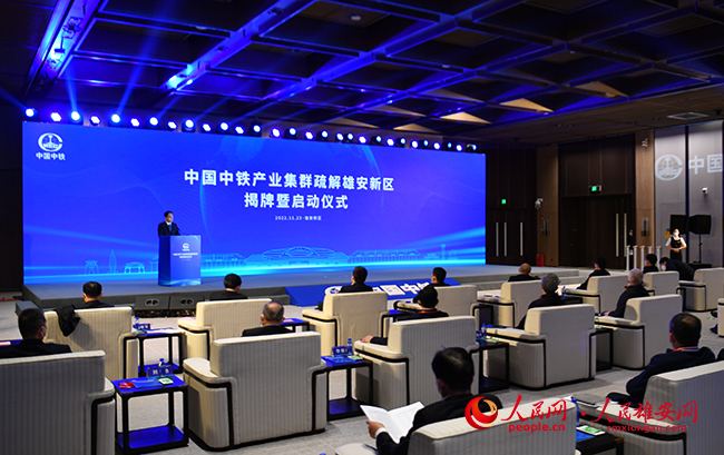 中國中鐵產業集群疏解落地雄安新區揭牌暨啟動儀式現場。人民網?宋燁文攝