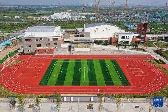 史家胡同小學雄安校區項目操場(2022年8月17日攝,無人機照片)。 新華社記者 朱旭東 攝