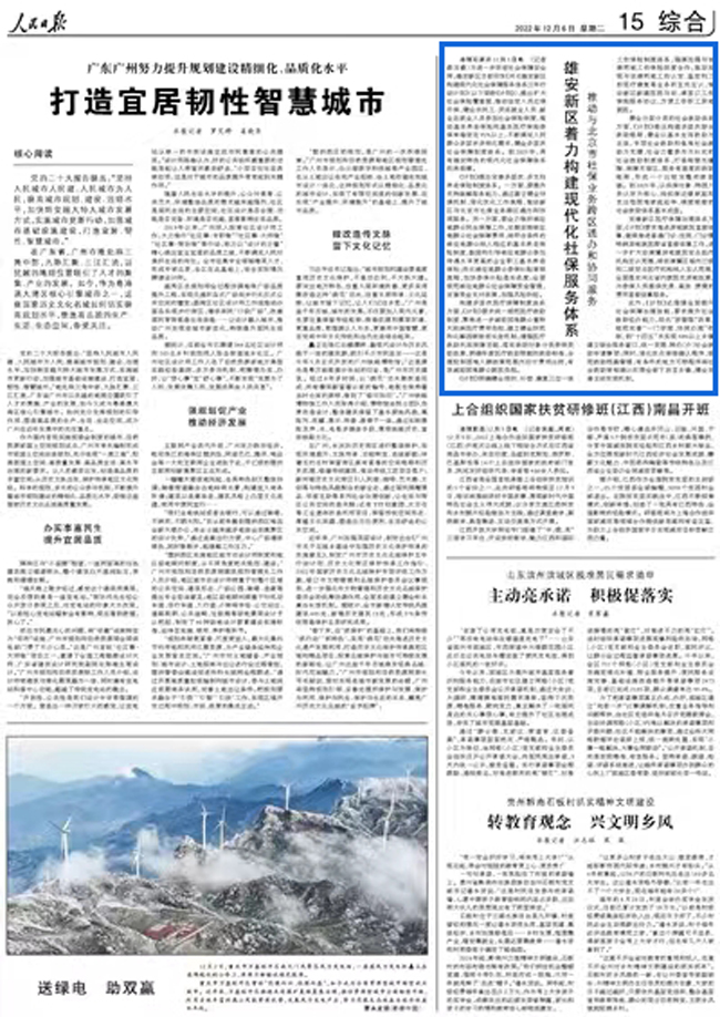 《計劃》提出完善多層次、多支柱養老保險制度體系。一方面,要提升支持疏解服務能力,通過建立健全協調機制,簡化優化工作流程,推動新區與北京市社保業務跨區通辦和協同服務。另一方面,要全力做好被征地群眾民生保障工作,足額安排被征地群眾社會保障費用,將符合條件的被征地群眾納入相應的基本養老保險制度,鼓勵和引導被征地群眾參加待遇水平更高的企業職工基本養老保險;優化被征地群眾參保補貼審核流程,加快參保補貼落實進度;全面規范被征地群眾社會保障資金管理,完善資金支付政策,加強風險防控。