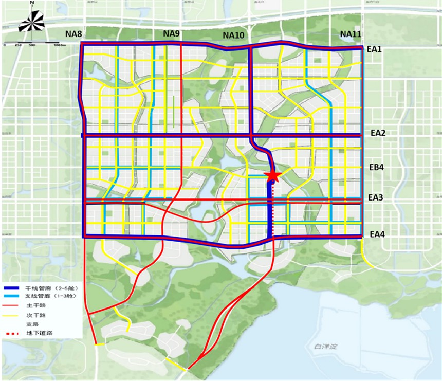 NA10路項目是貫穿啟動區的南北向主干路,北接京雄高速,南至白洋淀,主要包括市政道路、綜合管廊、給水排水管網系統、燃氣及供熱(冷)管線工程。其中,位于金融島范圍內的NA10路中間段(EB4-EG12段)已于今年7月開工建設,長度約1.8公里,將以隧道形式穿越金融島及東西軸,并在兩側設置地面輔路。據介紹,地面、地下均設置為雙向4車道,地面輔路設計速度為40千米/小時,地下主路設計速度60千米/小時。
