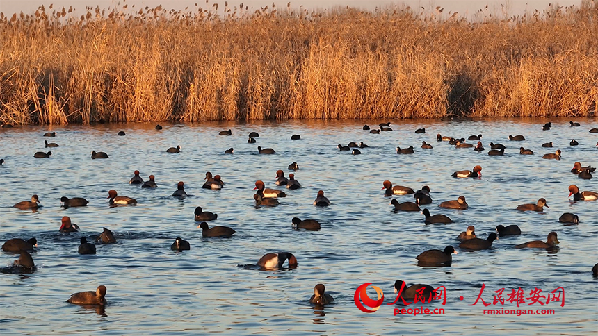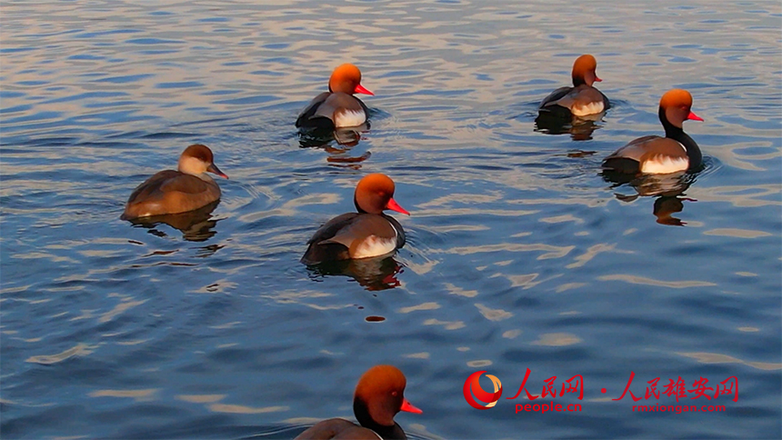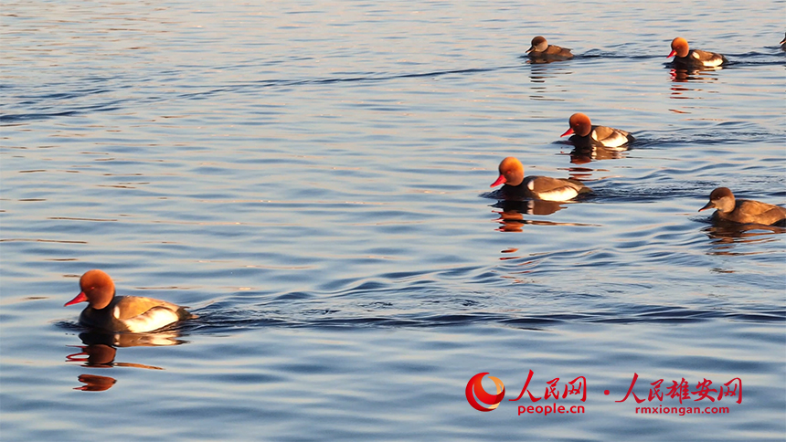 人民網雄安12月13日電 冬日的暖陽下,白洋淀碧波蕩漾,優良的水質和豐茂的水草,吸引了上千只赤嘴潛鴨在這里越冬,它們時而暢游嬉戲 ,時而潛水覓食,姿態萬千又呆萌可愛。這是來自雄安新區雄縣的愛鳥護鳥志愿者在白洋淀記錄到的影像。