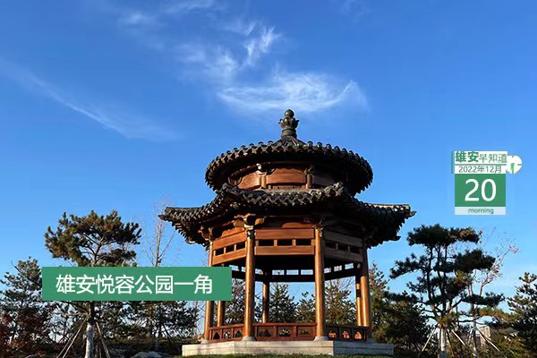 今天是2022年12月20日,星期二,天氣多云,-10℃~5℃。在封面和大家見面的是雄安悅容公園一角。