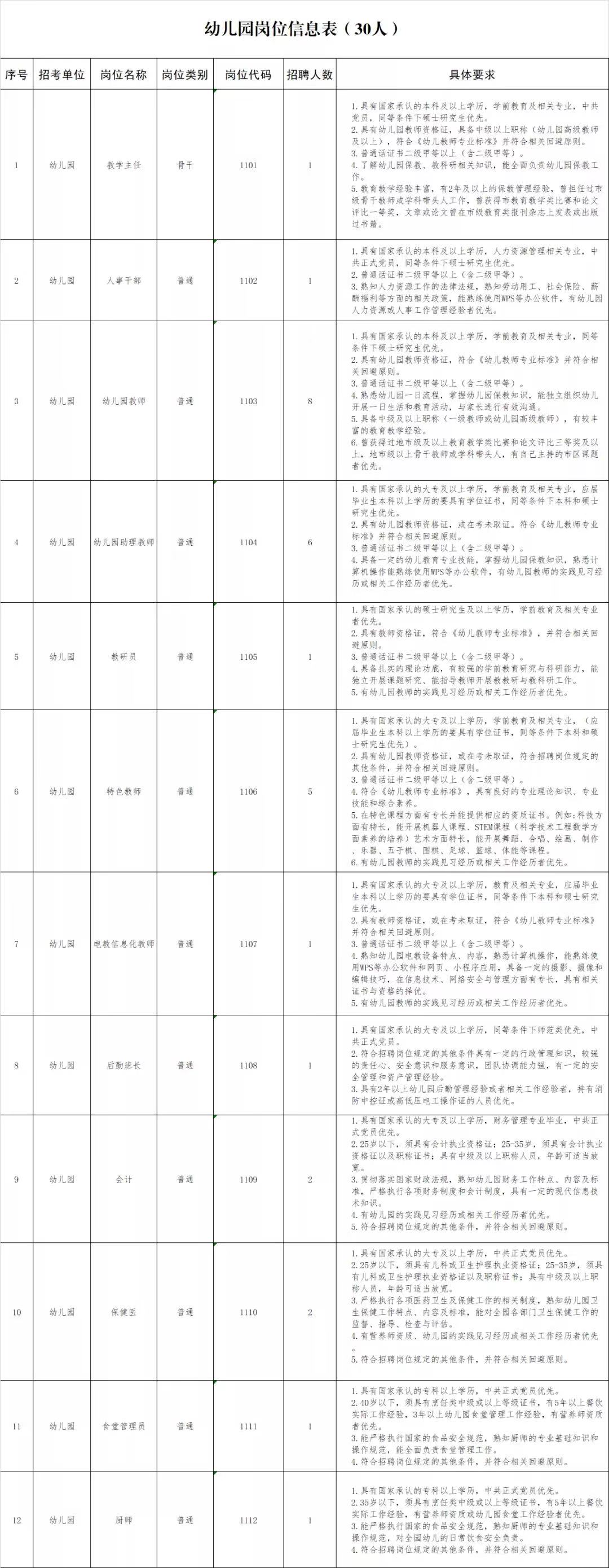 幼兒園面向全國公開招聘教職工30名(詳見職位表)。