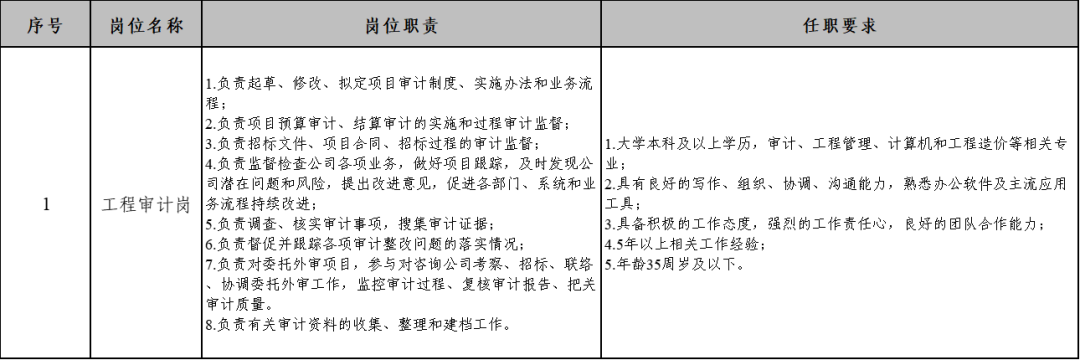 河北雄安人力資源服務有限公司(以下簡稱雄安人力公司)根據工作需要,現面向社會公開招聘業務外包員工,工作地點在雄安新區,從事工程審計相關工作。