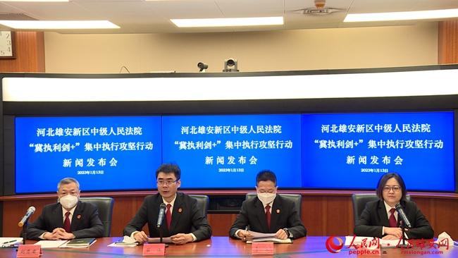 人民網雄安1月13日電(施云娟、楊華龍)雄安新區兩級法院自2022年10月下旬啟動“冀執利劍+”集中執行攻堅行動以來,執結案件1086件,為申請執行人累計發放570余筆執行案款,執行到位近3000萬元;326名被執行人被列入失信名單。這是從今天上午河北雄安新區中級人民法院(下稱“雄安中院”)召開的新聞發布會上獲悉的。
