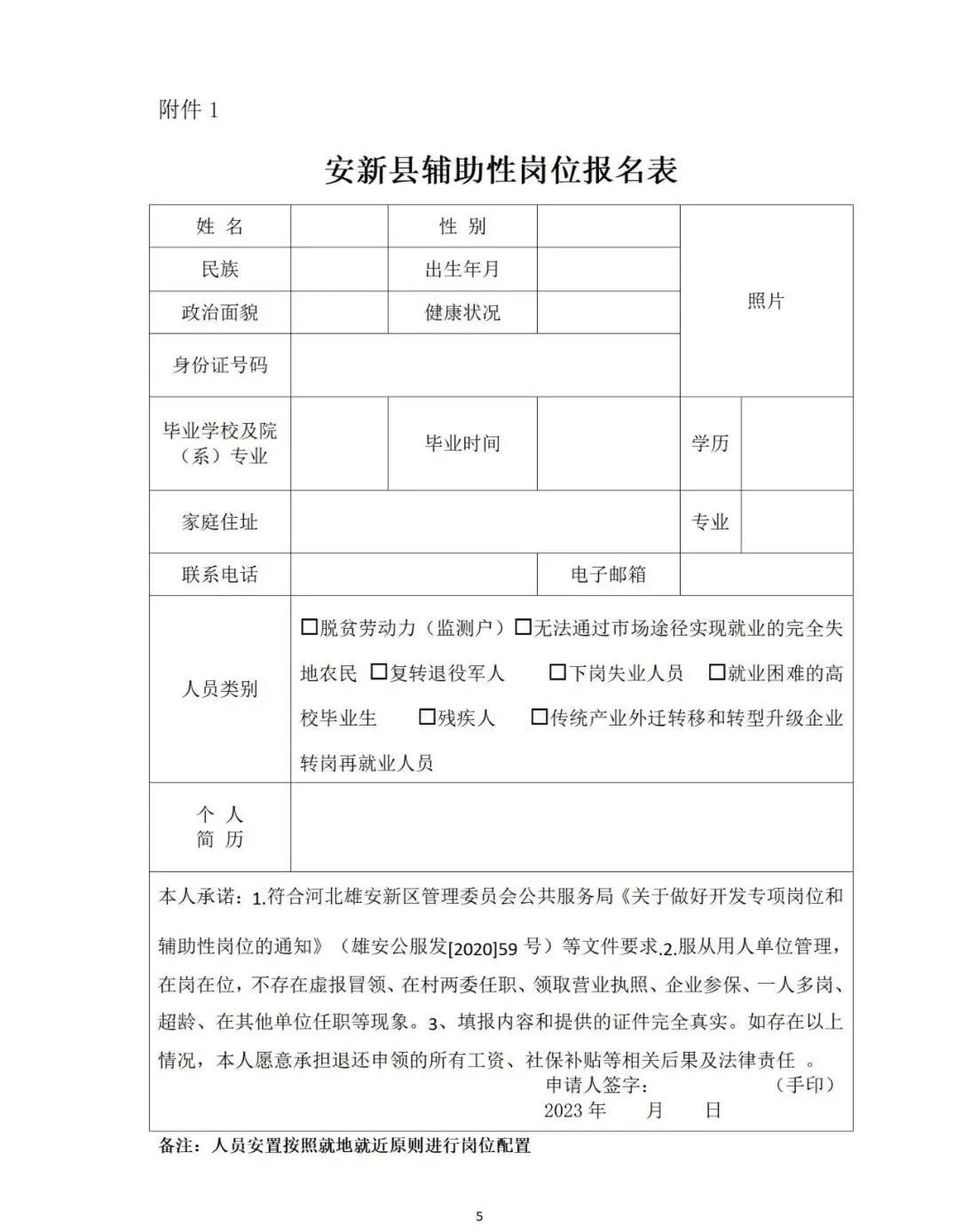 3.報名登記結束后由社管委和就業局負責對報名人員進行資格審核,并組織面試及基本業務能力測試。面試合格人員帶身份證、戶口本復印件、六張小二寸近期免冠照片、畢業證等身份類別證明、《失業證明》(轉崗再就業人員提供)一式三份到各社區填寫《安新縣專項(輔助性)崗位審核備案表》、專項(輔助性)崗位人員承諾書報送到社管委備案保存,同時與社管委簽訂《安新縣輔助性崗位就業協議》一式三份。
