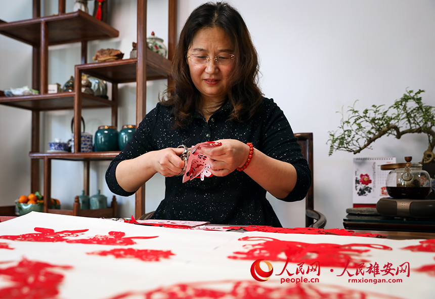 人民網雄安1月19日電?(宋燁文)1張紅紙、2把剪刀、3寸桌墊,一開一合不出3分鐘,一串“團結兔”便在王愛的手下誕生。紅紅火火的“團結兔”可愛又喜慶,洋溢著濃濃年味兒。