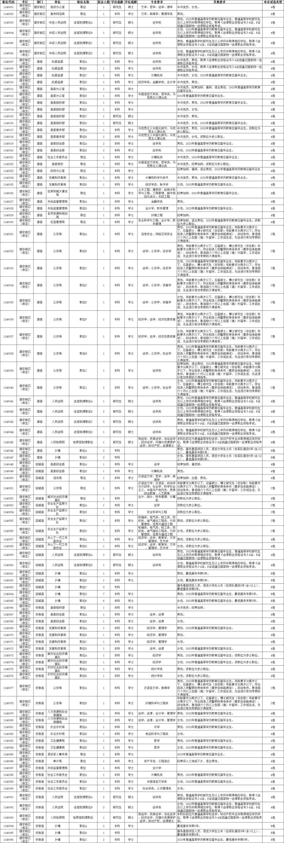 2.職位條件中“退役大學生士兵”是指以下兩類人員:一是從河北省應征入伍、2022年服役期滿退出現役,入伍前取得普通高等教育大學??埔陨蠈W歷的退役士兵;二是大學期間從河北省應征入伍、服役期滿退出現役后復學,2023年應屆畢業的普通高等教育大學??埔陨蠈W歷的退役士兵。