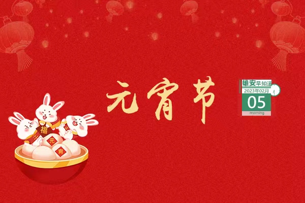 今天是2023年2月5日,星期日,天氣多云,-4℃~9℃。今天是農歷正月十五,元宵節,主要有賞花燈、吃湯圓、猜燈謎、放煙花等一系列傳統民俗活動,不少地方還有游龍燈、舞獅子、踩高蹺、劃旱船、扭秧歌、打太平鼓等傳統民俗表演。