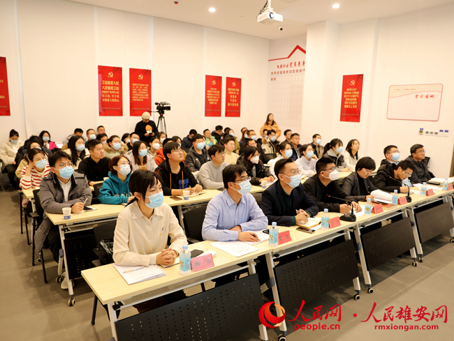 此次送教活動采取主會場加分會場形式,雄安新區黨群工作部、容西管委會相關負責同志,容西、容東、昝崗管委會年輕干部、社區書記、社區工作者、黨群服務中心工作人員等參加活動。