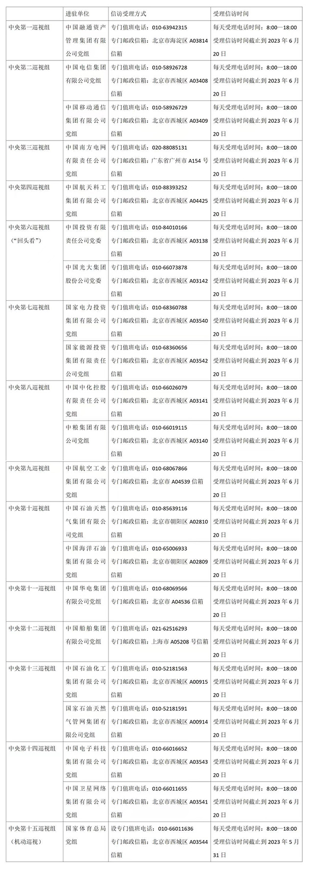1、日前,二十屆中央第一輪巡視的15個巡視組開始陸續進駐被巡視單位黨組織開展巡視工作。第二批集中進駐的21家被巡視單位信訪受理方式已經公布。