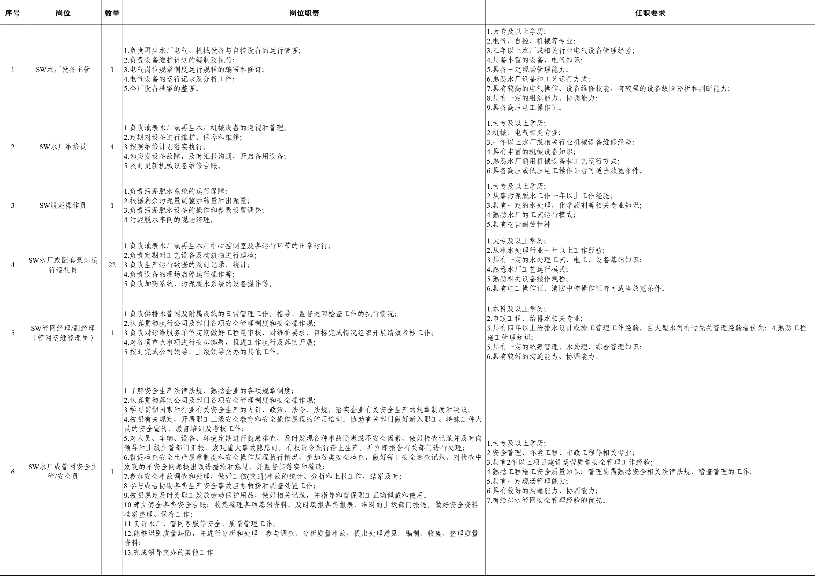 以下崗位入職人員將根據實際工作需要,安排至容東、容西、雄東、昝崗等片區水務運營項目工作。