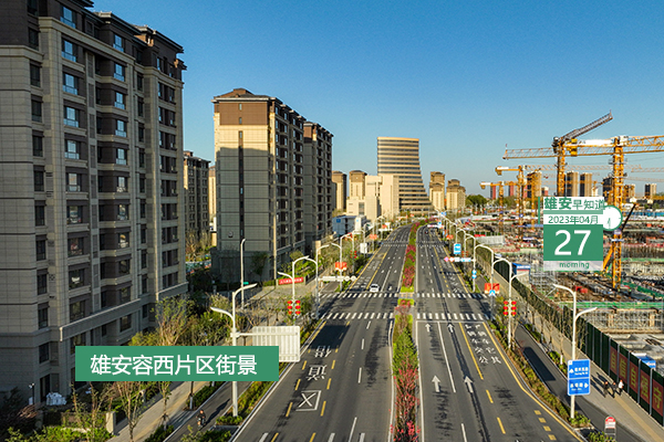 今天是2023年4月27日,星期四,天氣小雨,14℃~24℃。在封面和大家見面的是雄安容西片區街景。