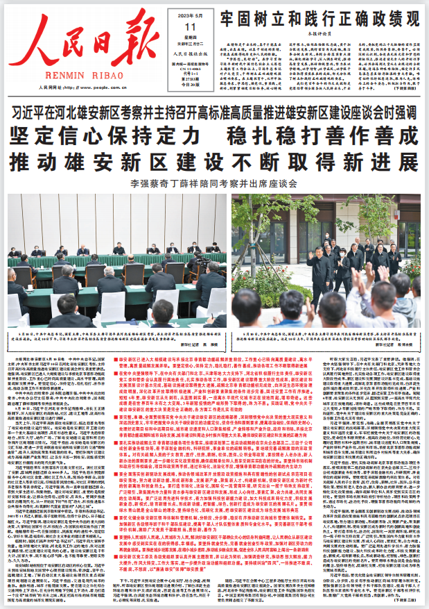 5月10日,習近平在河北省委書記倪岳峰、省長王正譜陪同下,深入雄安新區的高鐵站、社區、建設工地等,就高標準高質量推進雄安新區建設進行調研。