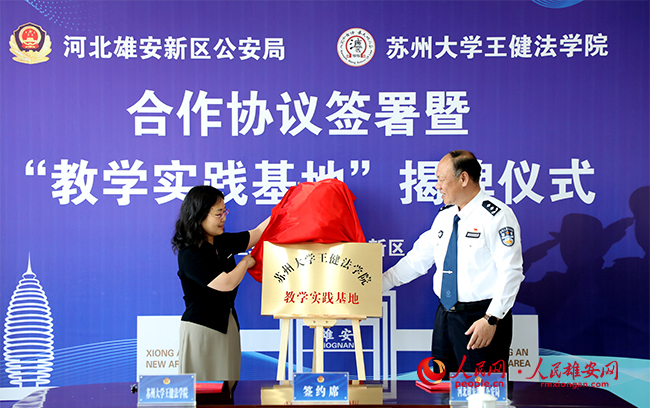 人民網雄安5月11日電 (宋燁文)日前,雄安新區公安局與蘇州大學王健法學院簽署合作協議,并在雄安新區公安局揭牌設立“蘇州大學王健法學院教學實踐基地”,深化校局合作。