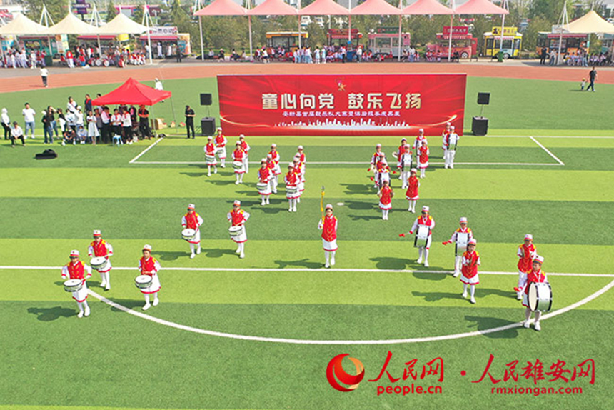人民網雄安5月17日電 (何美萱)?日前,雄安新區安新縣舉辦了首屆鼓樂隊大賽暨課后服務成果展,共有16支參賽隊伍,575名少先隊員參與。本次大賽采用互評互學的形式進行,旨在加強校園鼓樂隊建設,進一步培養學生群體意識,增強集體榮譽感,搭建青少年學習成長的平臺。