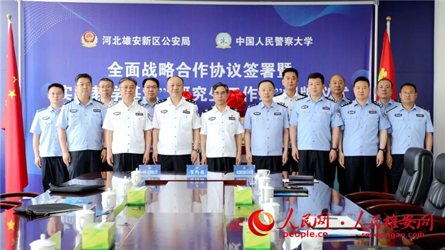 人民網雄安5月22日電 (李雪晴)近日,雄安新區公安局與中國人民警察大學簽署了全面戰略合作協議簽署。當天,中國人民警察大學實踐教學基地和研究生工作站也在雄安新區公安局揭牌成立。
