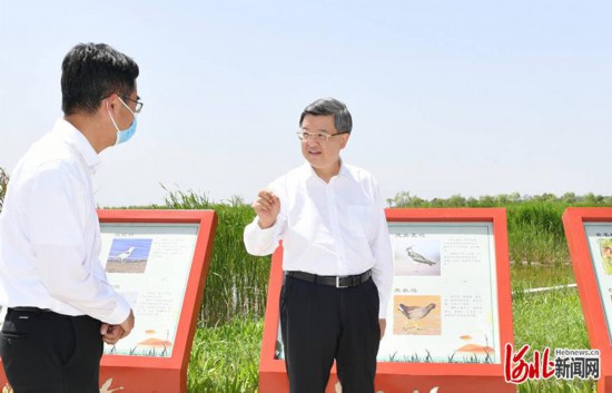 6月1日,省委書記、省人大常委會主任倪岳峰在孝義河河口濕地調研。河北日報記者趙海江攝
