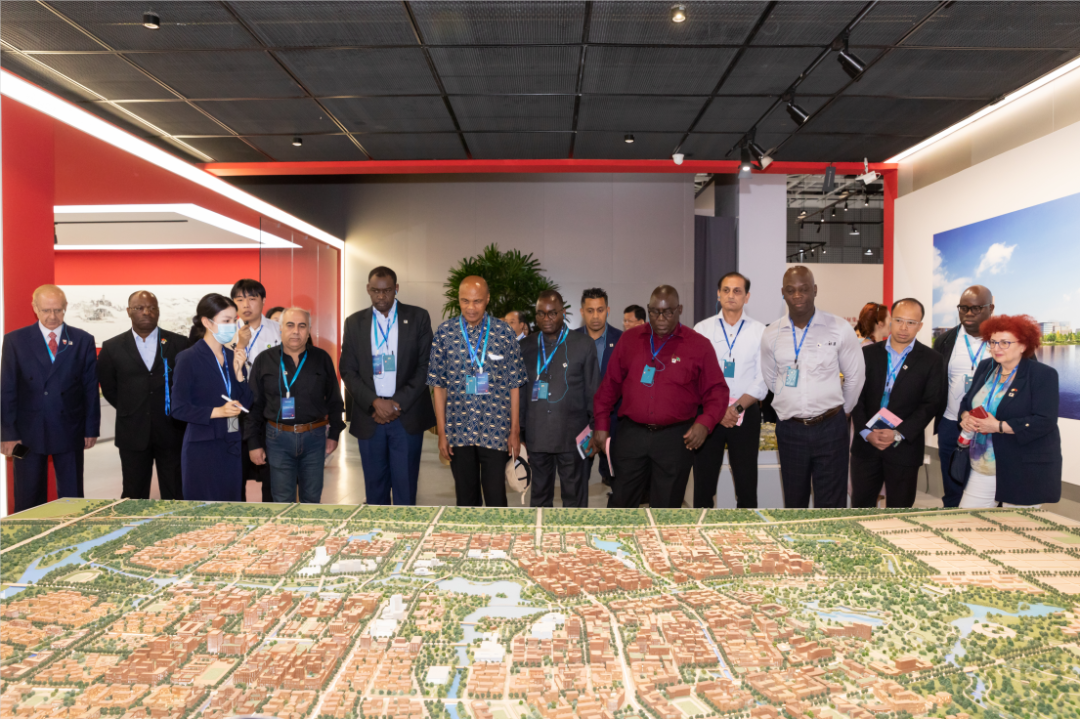 李濤代表新區黨工委、管委會熱烈歡迎使節團一行訪問雄安,從“為什么要建設雄安新區”“建設一個什么樣的雄安新區”“怎樣高質量建設雄安新區”三個方面介紹了雄安新區規劃、建設和發展情況。他指出,設立河北雄安新區,是以習近平同志為核心的黨中央深入推進京津冀協同發展作出的一項重大決策部署。雄安新區的重要歷史使命就是要打造貫徹落實新發展理念的創新發展示范區和新時代高質量發展的全國樣板。今年5月10日,習近平總書記第三次到新區考察,主持召開高標準高質量推進雄安新區建設座談會并發表重要講話,深刻指出了高標準高質量建設雄安新區的戰略方向和具體路徑,為新區未來發展指明了方向。在未來發展中,新區將繼續以開放包容、兼容并蓄的姿態,吸引更多國際人才、技術、資金、項目。希望各位使節多多關注雄安、支持雄安,積極宣傳雄安,同時充分發揮獨特優勢,幫助新區引全球之才,聚全球之智,共享雄安機遇,共同見證和參與雄安這座“妙不可言、心向往之”未來之城的成長與發展!