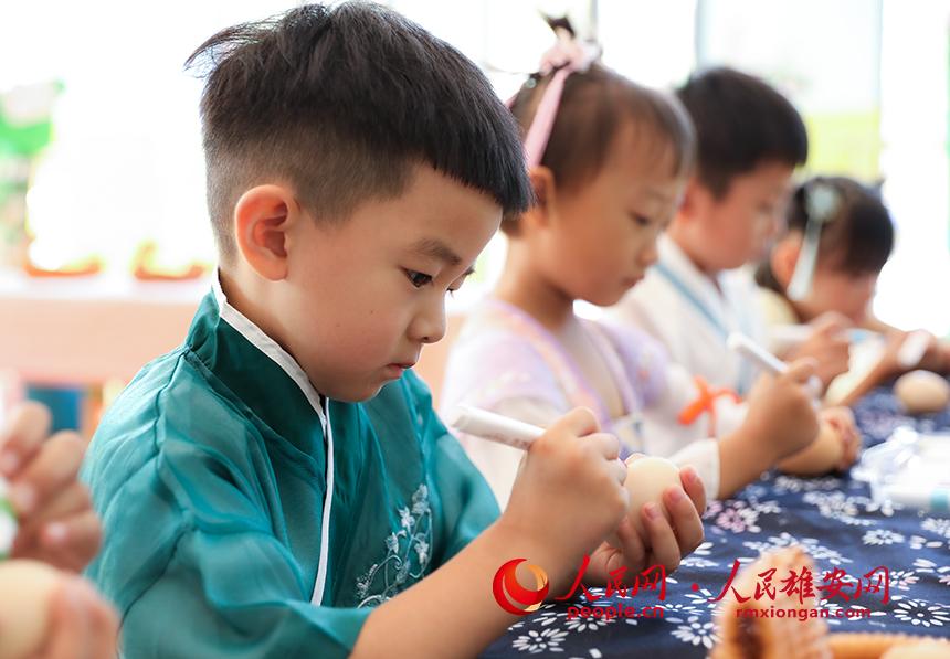 雄安容西青禾幼兒園端午游園會活動上,孩子們正在畫彩蛋。人民網 李兆民攝