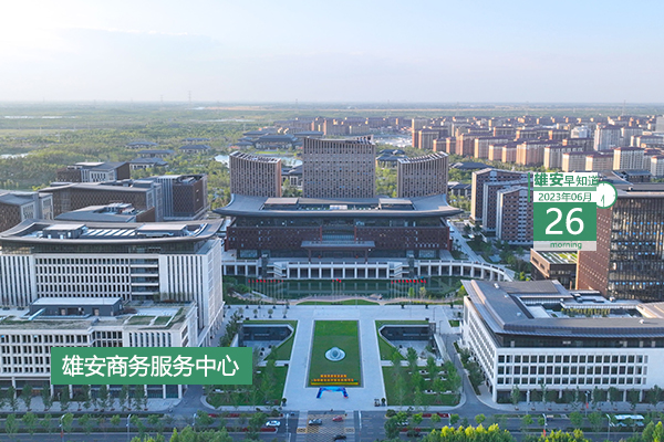 今天是2023年6月26日,星期一,天氣陰轉多云,25℃~35℃。在封面和大家見面的是雄安商務服務中心。